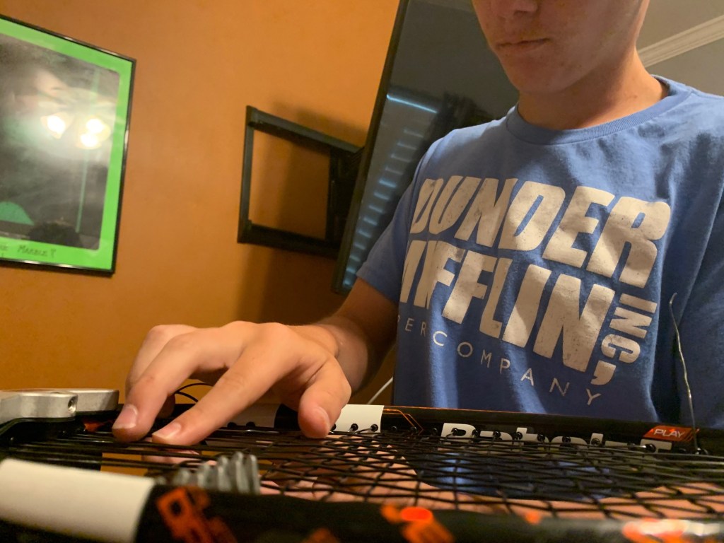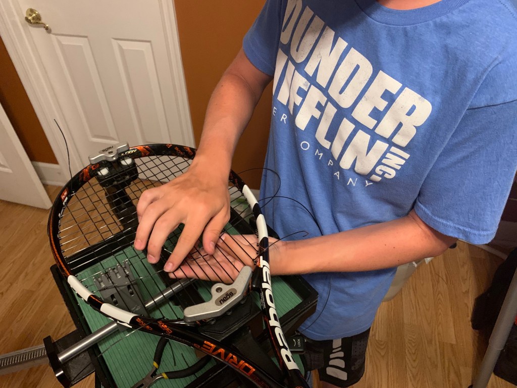 Getting your racquet strung at some country club will cost $60. Jaxon is on the high school tennis team and knows what he’s doing. He strung my racquet that day.